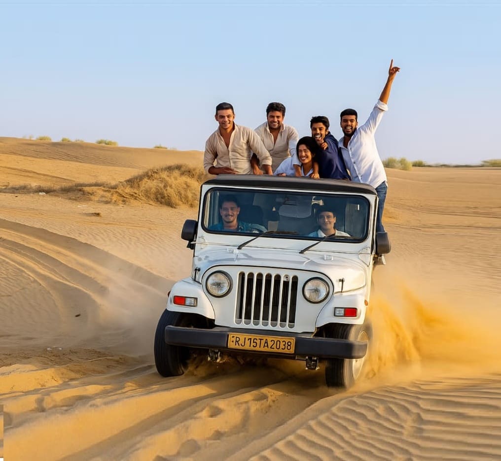 Our team is dedicated to making your journey smooth, safe, and memorable. From visiting the majestic Jaisalmer Fort, Patwon Ki Haveli, and Gadisar Lake, to experiencing thrilling activities like camel safari, jeep safari, quad biking, and parasailing, we ensure every trip reflects the true spirit of the desert.